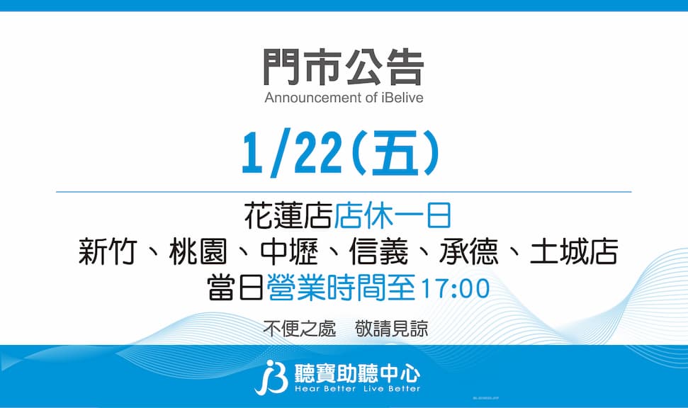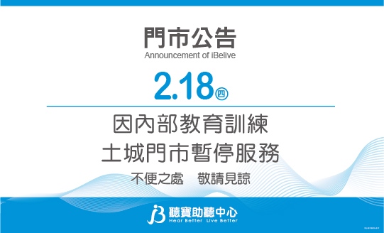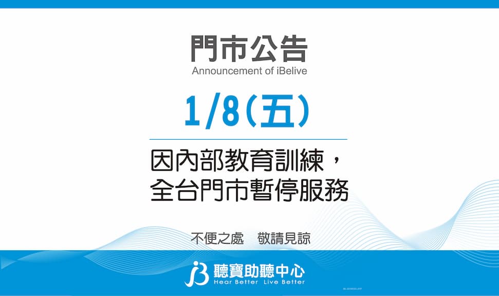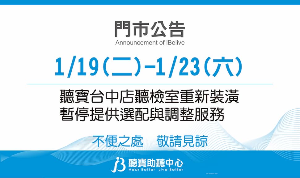 1/19(二)-1/23(六)聽寶台中店暫停選配與調整服務