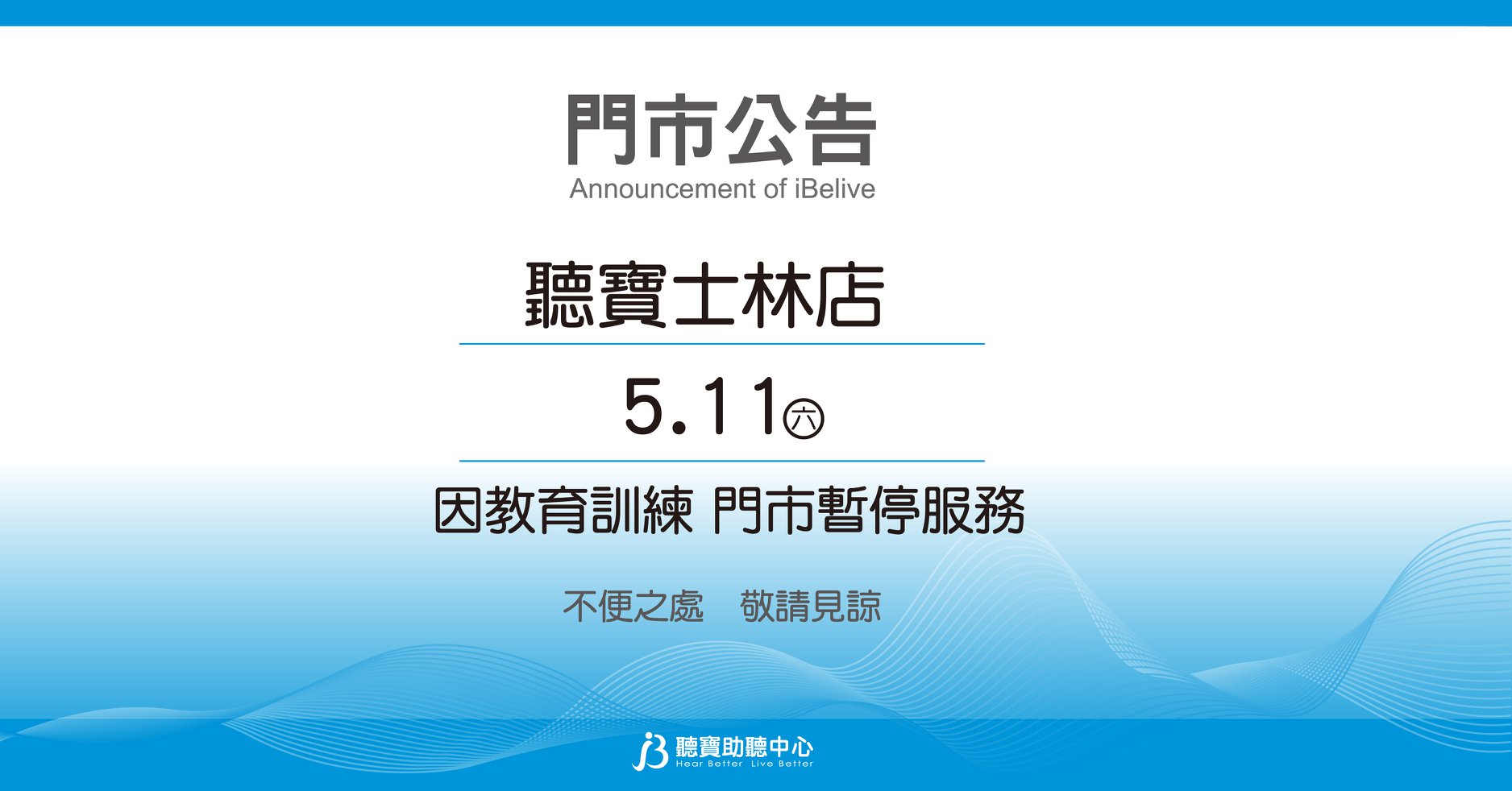 聽寶士林店5/11門市暫停服務