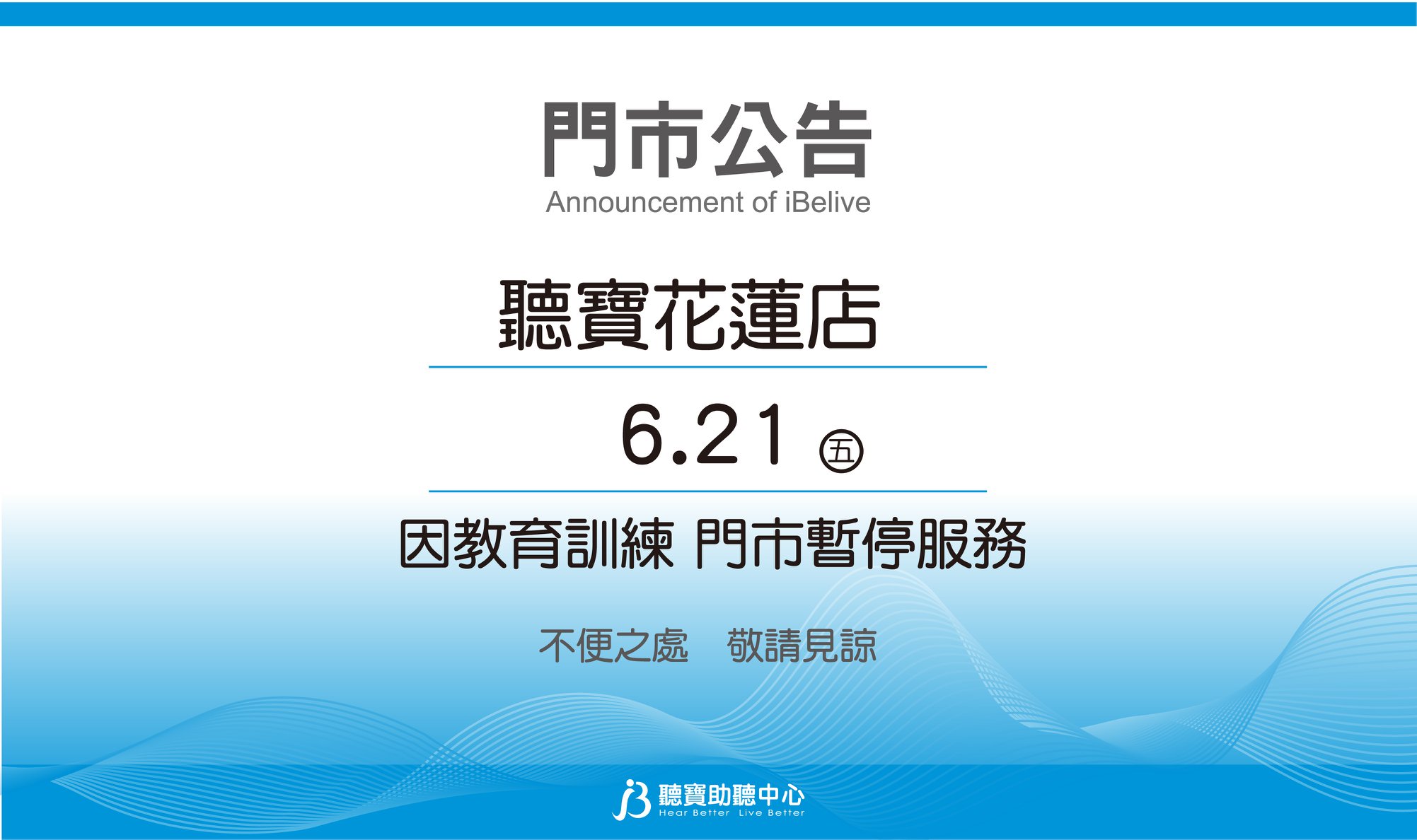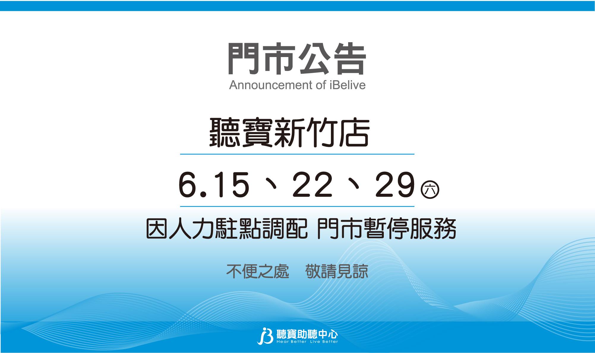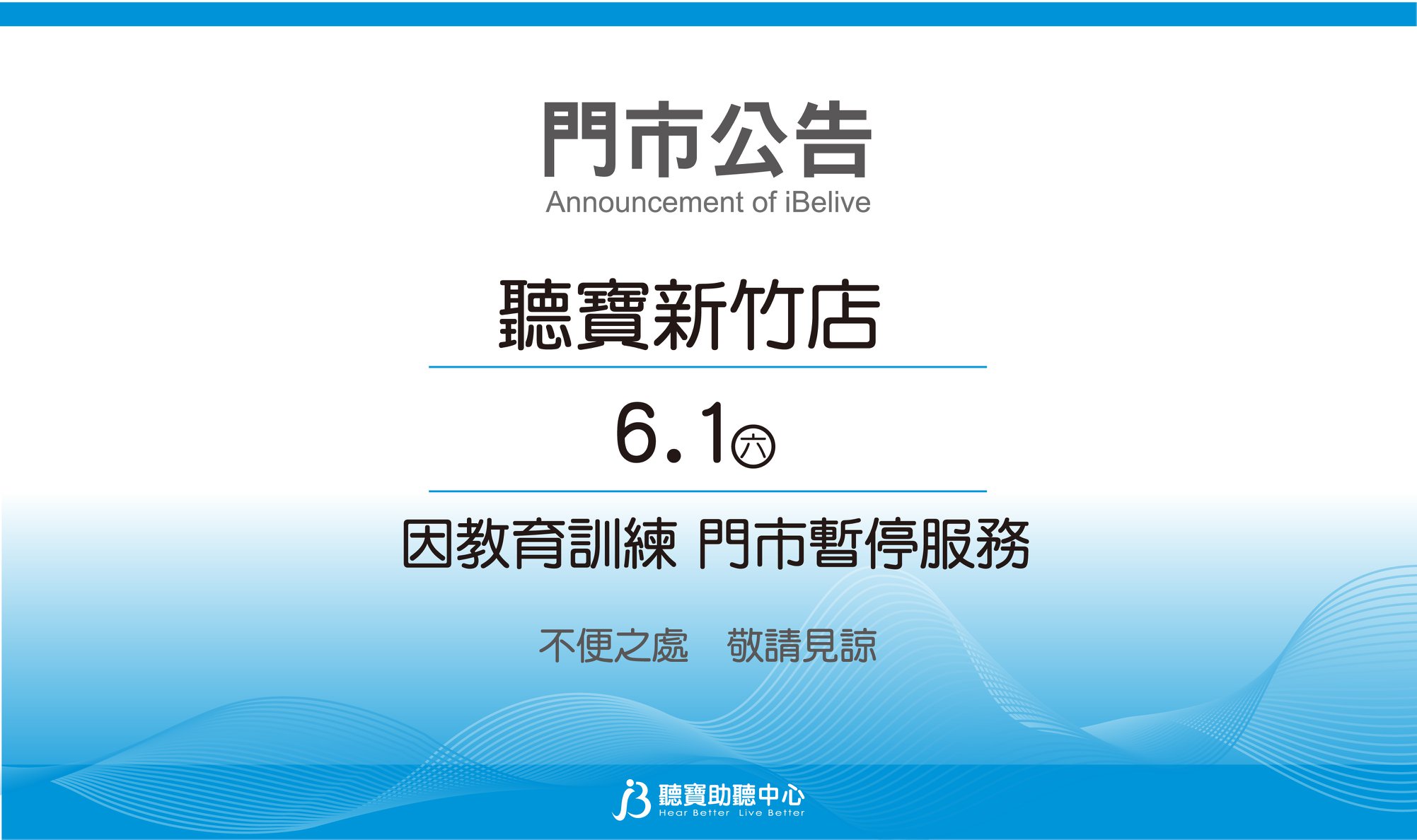 聽寶新竹店 因教育訓練 6/1(六)門市暫停服務