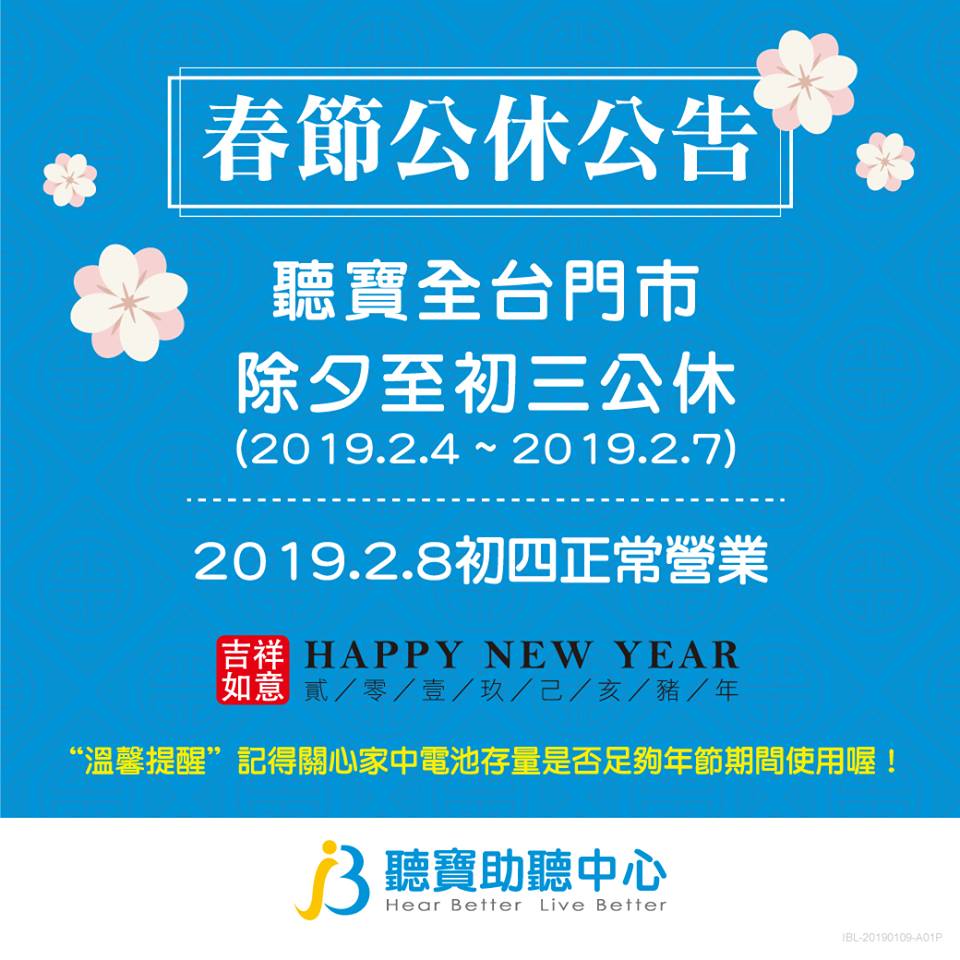 除夕至初三 全台門市公休 2019/2/8(五) 初四正常營業 祝您豬年吉祥!!